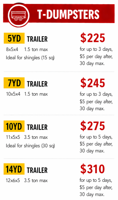 local dumpster rental services to meet your every need. Our residential dumpster rentals are perfect for renovating your home, cleaning out your garage, or any other home project. Choose from a range of sizes to fit your specific needs.